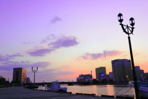 北海道 釧路市の釧路川周辺の夕景