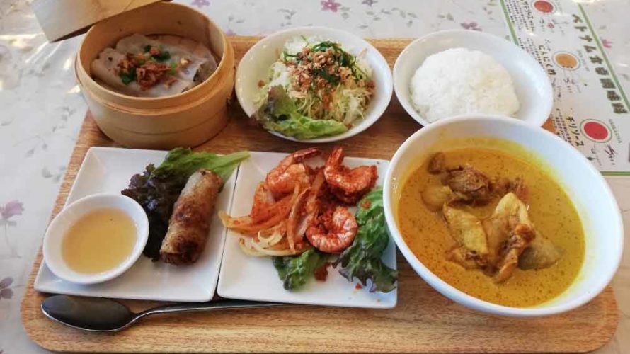 ベトナム料理の店「ジャスミンパレス」のチキンカレーと海老のバター焼きのセット