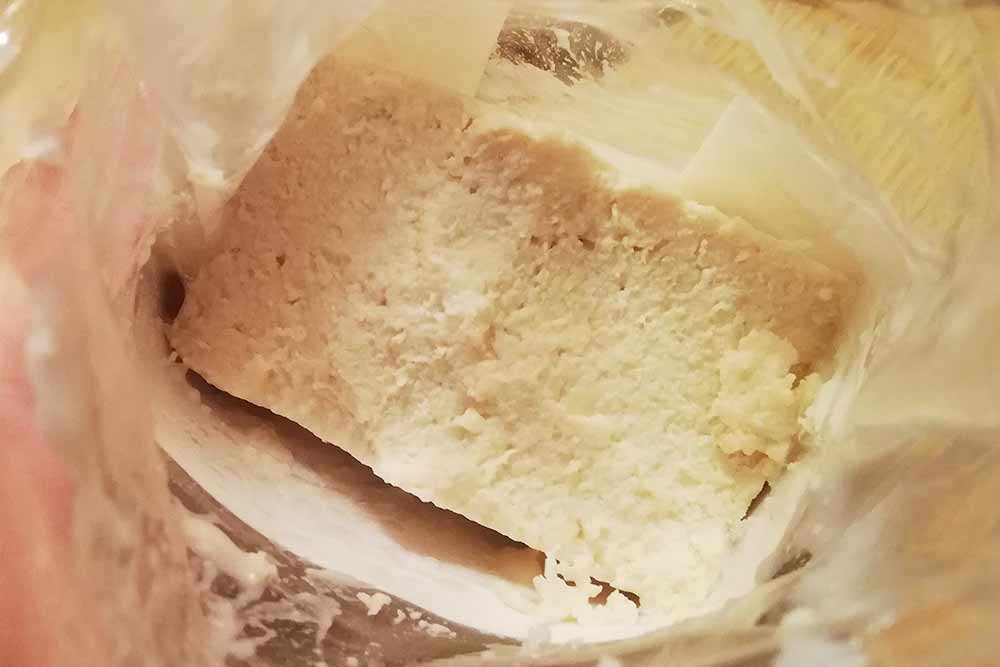 外側はクリームチーズ風ですが、中身はしっかり島豆腐な見た目のようです。