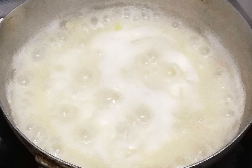 キットによりますが、まずは鍋で野菜や肉を炒め、水や牛乳、マカロニを入れて茹でます。